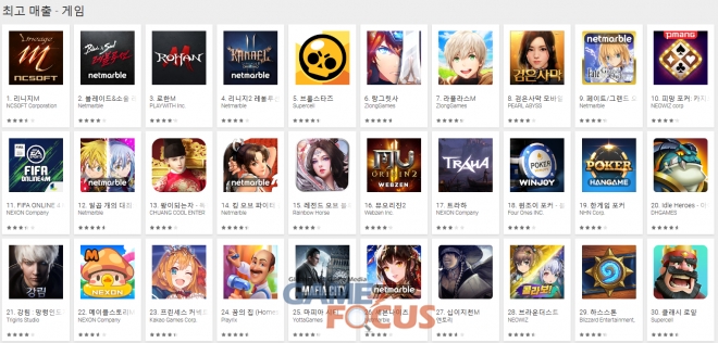 반면 지난 주 8위를 차지한 '랑그릿사'는 이번 주 14위로 서비스 초기에 비해 순위가 낮아졌으며, '세븐나이츠'가 지난 주 26위에서 이번 주 19위로 순위를 대폭 끌어올렸다. 더불어 구글 플레이에서도 상승세를 탔던 '페이트/그랜드 오더'가 이번 주 26위로 오랜 만에 30위 내 진입에 성공했다.