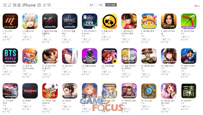 애플 앱스토어에서는 지롱게임의 '라플라스M'이 2위로 순위를 더욱 끌어 올리면서 상승세를 이어갔으며, 방학 시즌의 강자 '메이플스토리M'과 캐주얼 게임의 대표 주자가 된 '궁수의 전설' 그리고 '브롤스타즈' 등의 순위가 소폭 상승했다.