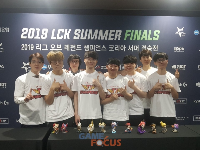 SKT T1이 고려대학교 화정체육관에서 열린 '2019 우리은행 LoL 챔피언스 코리아 서머' 결승전에서 그리핀을 상대로 3대 1로 승리했다. 특히 SKT T1은 지난 '2019 LCK 스프링' 시즌 결승전에서 그리핀을 상대로 3대 0 압승을 거둔 바가 있어, 두 팀의 재대결에 많은 관심이 모아지기도 했다. 경기 결과 SKT T1은 그리핀의 탑과 미드 공격로, 소위 '상체'를 집중적으로 공략하며 경기를 유리한 방향으로 이끌어나갔다.