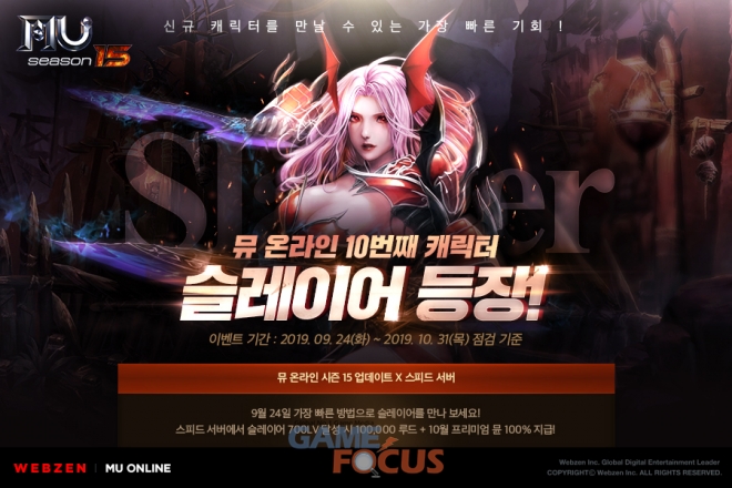 웹젠(대표 김태영)이 PC MMORPG '뮤 온라인'의 '시즌 15' 1차 업데이트를 진행하고 신규 캐릭터 '슬레이어(Slayer)'를 선보였다.