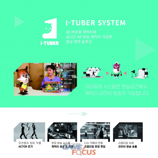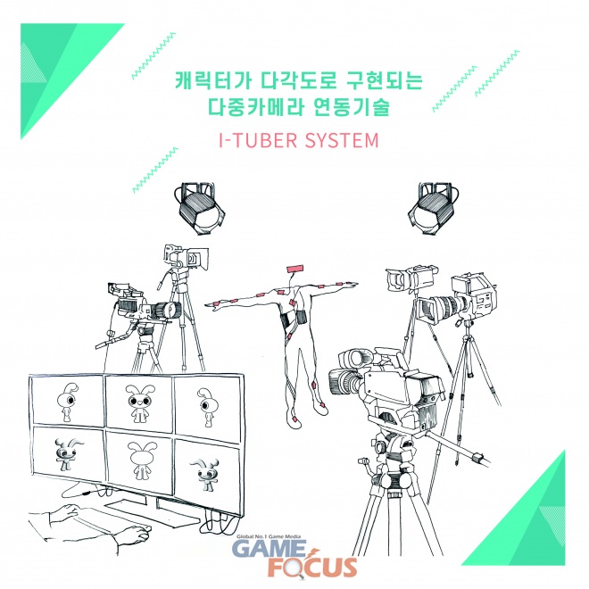 두리번이 자체 제작한 '아이튜버' 시스템은 가상의 캐릭터와 현실의 출연자가 실시간으로 소통하는 리얼타임 콘텐츠 솔루션이다. 센서나 오디오 통신만을 사용하는 초저지연 데이터 전송기술로 방송사 제작환경 외에도 유튜브, 트위치 등 모든 스트리밍 플랫폼에 즉시 적용이 가능하다. 지난 5월 가상현실 박람회 '서울 VR•AR 엑스포 2019' 현장에서 최초 공개되면서 업계 관계자들의 호응을 얻은 바 있다.