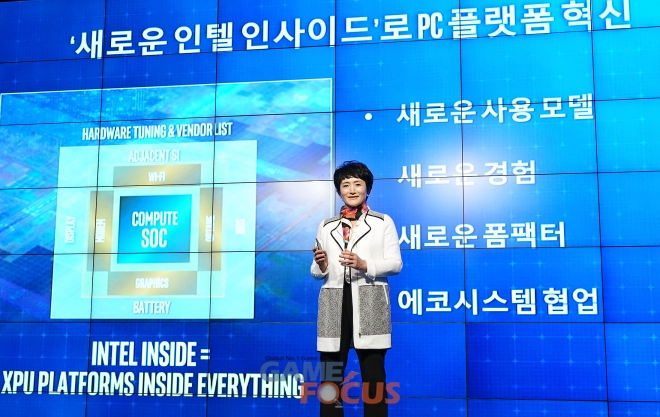 권명숙 인텔코리아 사장은 인사말을 통해 "PC 플랫폼을 구성하고 있는 다양한 하드웨어, 소프트웨어 공급사는 물론, 완제품을 만드는 제조사까지 포함하는 생태계와의 협업을 바탕으로, PC 사용경험을 혁신하고, 새로운 폼팩터를 만들어내는 작업에 박차를 가하고 있다"며 행사에서 공개된 새로운 제품들의 의의를 설명했다.