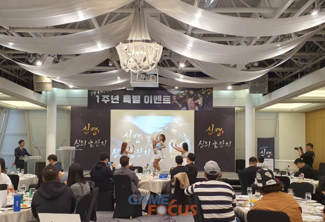 '신명'은 풍부한 콘텐츠, 고퀄리티 그래픽, 시원한 타격감, 원활한 인게임 커뮤니케이션이 특징인 모바일 무협게임으로 2018년 10월 10일에 한국에 정식 론칭되었으며, 10월 9일에는 3시부터 서울 '밀레니엄 힐튼 호텔 아트리움 행사장'에서 1주년을 기념하는 파티 '신의 돌잔치'가 개최되었다.