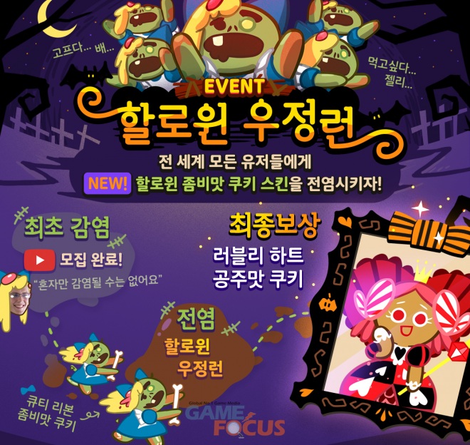 데브시스터즈(공동대표 이지훈, 김종흔)가 자사가 서비스하고 개발 스튜디오 쿠키런(대표 김종흔)이 개발하는 모바일 런게임 '쿠키런: 오븐브레이크'에서 '할로윈 우정런'을 통해 좀비 스킨을 전염시키는 색다른 이벤트를 진행한다.