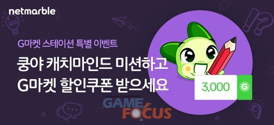 넷마블(대표 권영식)이 G마켓과 신개념 모바일 위치 기반 그림퀴즈게임 '쿵야 캐치마인드'의 아이템을 증정하는 제휴 이벤트를 실시한다.