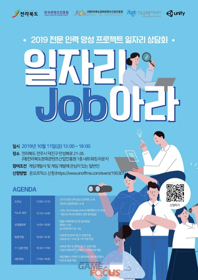마지막으로, 전문 인력 양성 프로젝트의 2번째 교육과정인 Unity Certification 인증자격 취득과정이 9월 30일부터 10월 25일까지 온오프믹스에서 모집 중이다. 본 과정은 10월 28일부터 11월 28일까지 교육이 진행되고 Unity 글로벌 인증 자격증을 취득할 수 있는 기회를 제공한다. 자세한 내용은 (재)전라북도문화콘텐츠산업진흥원 및 전북글로벌게임센터 홈페이지를 참고하거나 진흥원 전문 인력 양성 담당자(063-282-3778)에게 문의하면 된다.