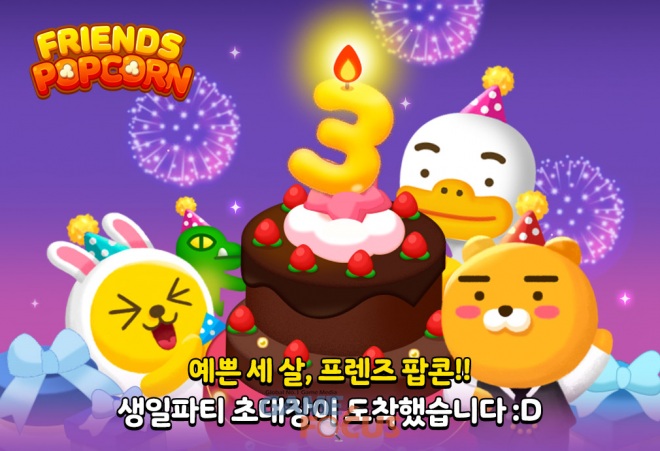 카카오게임즈(각자 대표 남궁훈, 조계현)가 17일(목), 모바일 퍼즐게임 '프렌즈팝콘'의 서비스 3주년 기념 이벤트를 실시했다.