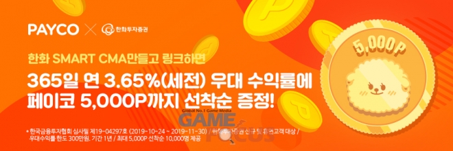 더불어 NHN페이코는 이번 'PAYCO 한화 Smart CMA' 시즌 3상품에 '페이코 포인트'와 결합해 금융 혜택을 제공하는 '페이코 포인트 링크' 연동 서비스를 신규 적용했다.