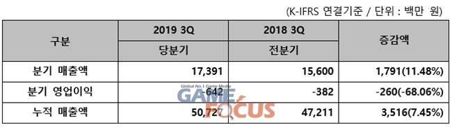 이스트소프트(대표 정상원)가 K-IFRS 연결재무제표 기준 2019년 3분기 매출액 173.9억원, 영업손실 6.4억원으로 집계되었다고 1일 잠정 공시했다.