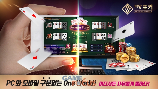 네오위즈(대표 문지수)가 자사가 서비스하고 네오위즈플레이스튜디오(대표 오은석)에서 개발한 '피망 포커:카지노 로얄'에서 PC와 모바일 플랫폼 통합 작업을 진행했다.