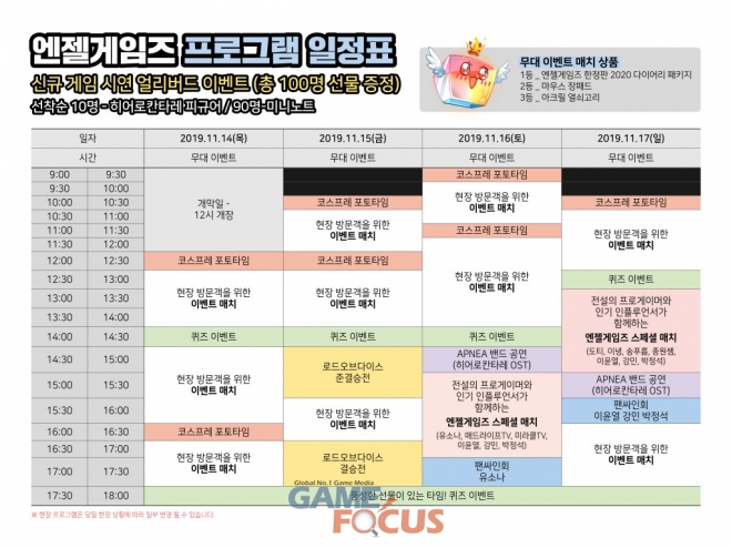 또한, 엔젤게임즈는 무대 이벤트 시간표도 공개했다.