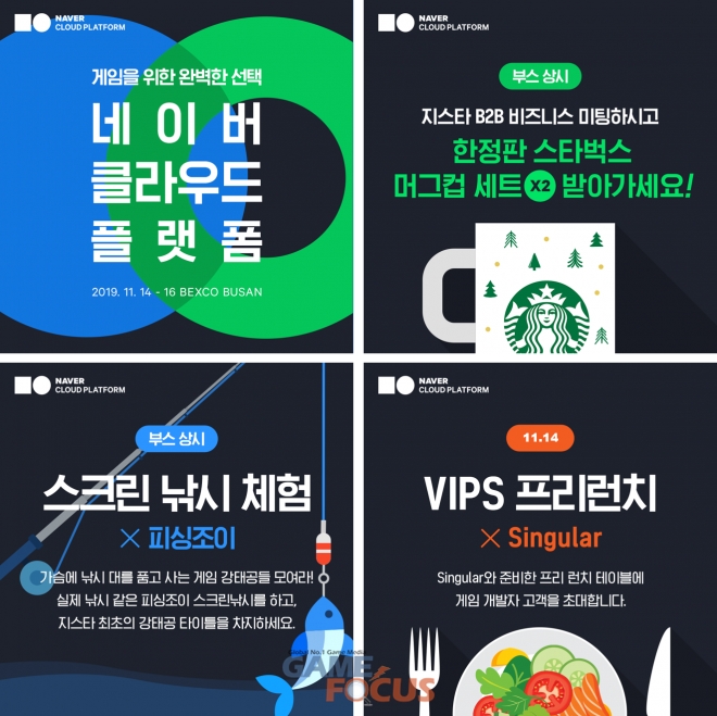 NBP는 이번 행사에서 네이버 클라우드 플랫폼의 게임 매니지먼트 플랫폼인 '게임팟(GAMEPOT)'을 적극적으로 알린다는 방침이다. 게임팟은 개발에 꼭 필요로 하는 기능들을 SDK 형태로 제공하는 동시에 효과적인 게임 운영을 돕는 툴도 함께 제공한다. 특히 로그인, 결제, 통계, 푸시, 쿠폰은 물론 게임 유저 정보를 기반으로 한 빅데이터 분석 및 다양한 운영 기능들도 탑재된 게임 솔루션이다.