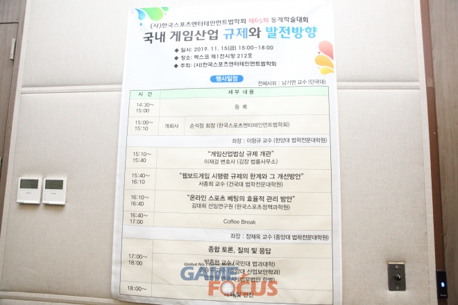 한국스포츠엔터테인먼트법학회가 주최하는 학술 세미나가 15일 '지스타 2019' 현장에서 진행됐다.