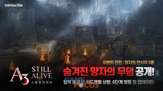 넷마블(대표 권영식, 이승원)은 모바일 최초 배틀로얄 MMORPG 'A3: 스틸얼라이브'에 신규 분쟁지역 던전 '망자의 안식처 B3 숨겨진 망자의 무덤'을 추가하는 등 업데이트를 실시했다고 29일 밝혔다.