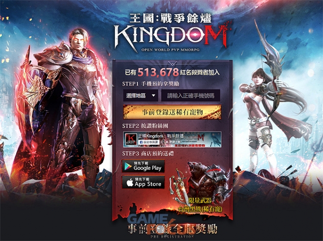 파우게임즈(대표 이광재)가 자사에서 개발 및 서비스 중인 모바일 MMORPG '킹덤 : 전쟁의 불씨(이하 킹덤)'의 12월 대만, 홍콩, 마카오 지역 정식 서비스를 앞두고 실시한 사전예약에서 가입자가 50만 명을 넘었다고 밝혔다.