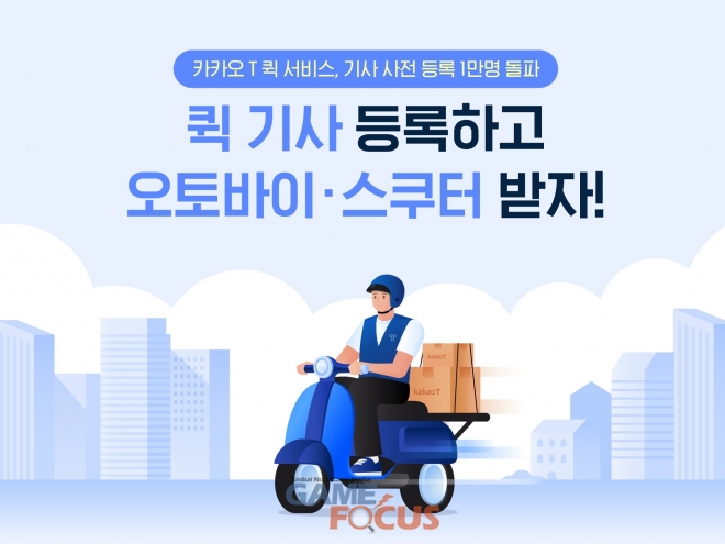 카카오모빌리티(대표 류긍선)가 '카카오 T 퀵 서비스'를 위한 퀵 기사 사전 모집 시작 10일 만에 1만 명이 넘는 기사가 몰렸다. 이에 따라 카카오모빌리티는 기사 모집을 본격화하고 사전 등록자들을 위한 이벤트도 확대 진행한다.