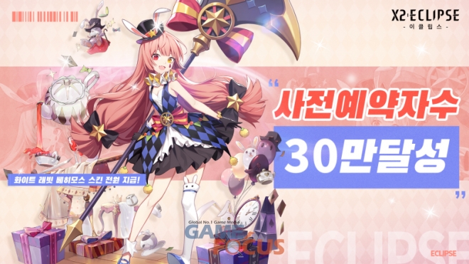 X2: 이클립스'는 국내 정식 출시 전까지 사전예약을 지속할 예정으로, 현재 30만 명 넘는 가입자를 유치한 상태다. 사전예약 이벤트를 통해 영혼석부터 화이트 래빗 베히모스 스킨까지 다양한 선물도 증정하고 있다. 또, 뮤직비디오 공개와 함께 공식 카페를 통한 SNS 공유 이벤트를 진행하고, 넬의 친필 사인 포스터를 포함한 다양한 경품 이벤트를 진행할 예정이다.