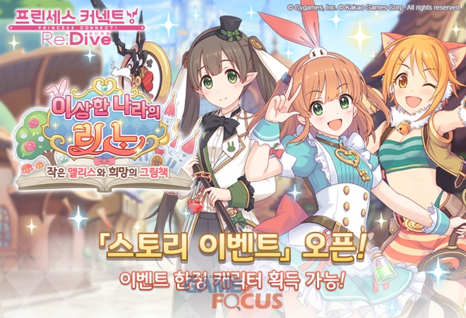 '프린세스 커넥트! Re:Dive(리:다이브)'는 신규 캐릭터 업데이트와 함께, 스토리 이벤트 '이상한 나라의 리노 작은 앨리스와 희망의 그림책'을 추가했다. 이번 스토리 이벤트를 통해 이용자들은 '리노', '아유미', '히요리'와 길드 '드래곤즈 네스트'의 '이노리', '호마레'를 중심으로 한 특별한 스토리를 감상할 수 있다.