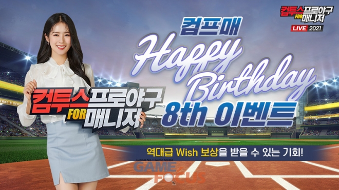 이번 이벤트는 지난 2013년 정식 서비스 이후 국내 대표 KBO기반 야구 매니지먼트 게임으로 자리매김하고 있는 컴프매 LIVE 2021'의 여덟 번째 생일을 팬들과 함께 기념하기 위해 마련했으며, 간단한 참여만으로 각종 게임 보상은 물론 특별한 혜택까지 제공된다.