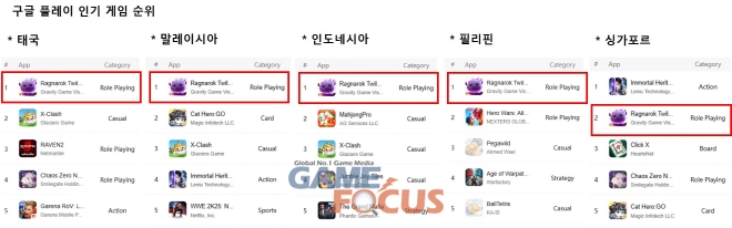 Ragnarok: Twilight은 동남아시아 지역 정식 론칭 후 구글 플레이 인기 순위 태국 1위, 말레이시아 1위, 인도네시아 1위, 필리핀 1위, 싱가포르 2위를 기록하는 등 상위권을 유지하고 있다. 태국, 필리핀 지역에서는 구글 플레이 매출 순위가 점차 상승해 10위권에 진입했다.