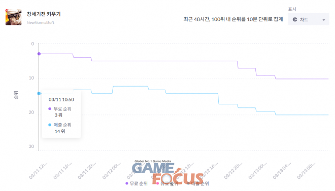 이러한 흐름 속에서 ‘창세기전 키우기’도 출시 직후 iOS 무료 인기 순위 3위, 매출 순위 14위를 기록하며 쾌조의 출발을 보였다. 출시 후 며칠이 지난 13일 기준으로는 소폭 하락했으나 여전히 상위권에서 순항 중이며, 이는 ‘창세기전’이라는 강력한 IP의 네임밸류와 방치형 RPG 장르의 득세가 시너지를 낸 결과로 분석된다.