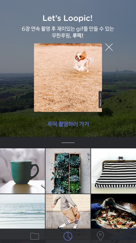 루픽(Loopic)은 순환(looping) + 사진(picture)의 합성어로, 무한 반복되는 GIF 를 보다 손쉽게 만들 수 있는 기능이다. 이용자들이 루픽 기능을 이용해 6장의 사진을 연속촬영하기만 하면 손쉽게 GIF 파일을 제작할 수 있으며, 폴라 뿐만 아니라 다른 게시판에도 해당 GIF 이미지를 자유롭게 활용할 수 있다.