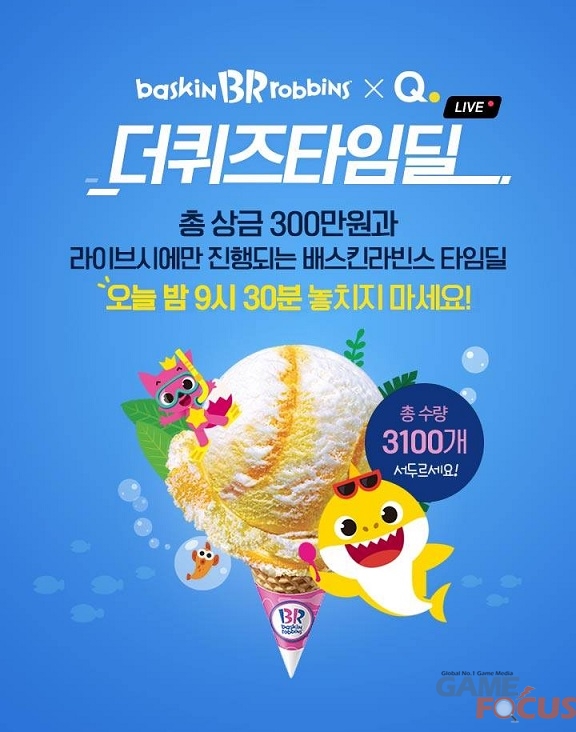 첫 판매 상품은 배스킨라빈스 '핑크퐁 상어가족 싱글레귤러 1+1 쿠폰'이었으며, 정가의 반값인 2800원에 판매해 0.5초만에 3100개가 완판됐다. 구매 쿠폰은 배스킨라빈스 가맹점에서 상품으로 교환할 수 있다. 이 밖에도 퀴즈 참여자들에게 간단한 이벤트를 통해 배스킨라빈스 아이스블라스트(200개), 아이스크림 케이크(10개), 핑크퐁 비치캡(40개)를 증정했다.