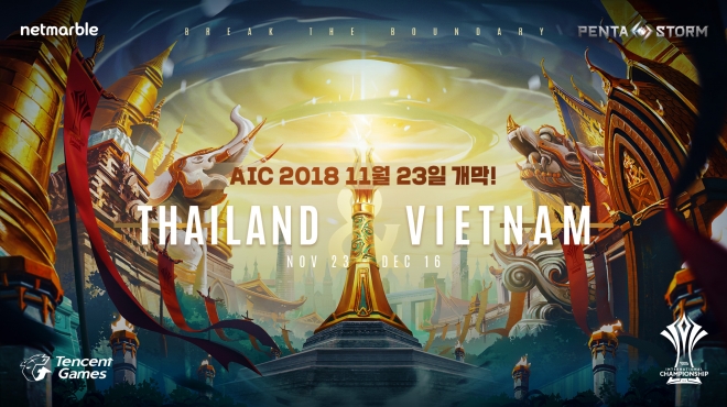 AIC 2018은 오는 11월 23일부터 25일까지 베트남에서 예선전을 치른 뒤 11월 30일부터 태국에서 본선을, 12월 16일에 결승전을 진행할 예정이다.