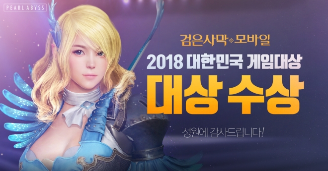 펄어비스(대표 정경인)는 14일 부산 신세계백화점 센텀시티점에서 진행된 '2018 대한민국 게임대상' 시상식에서 모바일 MMORPG '검은사막 모바일'이 대통령상인 대상을 포함한 기술•창작상, 우수개발자상, 인기게임상 등 6개 부문에서 수상했다고 밝혔다.