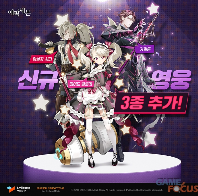 스마일게이트 메가포트(대표 장인아)가 자사가 서비스하고 슈퍼크리에이티브(김형석, 강기현 공동대표)가 개발한 모바일 턴제 RPG '에픽세븐'에서 신규 영웅 3종과 신규 콘텐츠 '레이드 미궁'을 선보이고 스킬 강화 시스템을 개선하는 등 대규모 콘텐츠 업데이트를 실시했다.