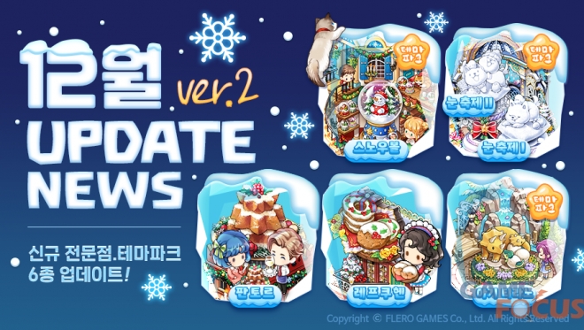 이번 업데이트를 통해 겨울과 크리스마스를 주제로 한 다채로운 생산시설이 등장했다. 은은한 계피향이 매력적인 독일의 성탄절 쿠키 '레프쿠헨 전문점'과 이탈리아 베로나 지방의 전통 크리스마스 케이크 '판도르 전문점'이 추가되었으며, 하얀 설원을 즐길 수 있는 테마파크 '눈 축제I', '눈 축제II', '스노우볼'도 업데이트됐다.