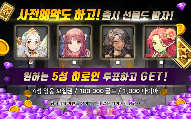 현재 개발사의 사전예약 웹페이지와 공식카페에서는 풍성한 이벤트가 진행 중이며 특히 사전예약자 투표를 통해 가장 인기있는 5성 영웅 캐릭터를 선정 중에 있고 유저들이 직접 뽑은 인기 투표 1위 5성 캐릭터 영웅은 출시 기념으로 지급될 예정이다. 또한 조아라와 함께하는 스페셜 팬아트&기대평 이벤트와 함께 이 밖에도 그린스킨 응원, 퀴즈 이벤트 등 그린스킨 굿즈와 경품을 건 다양한 이벤트가 준비되어 있다.