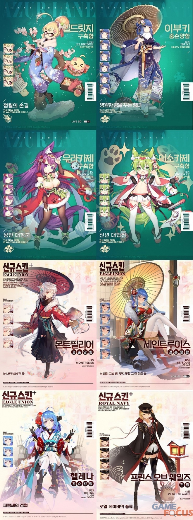 기존에 상시 판매가 되던 라피, 아카시, 프린츠 오이겐을 제외한 이번 신년 스킨들은 전부 2019년 1월 16일까지 판매된다.