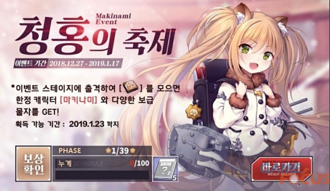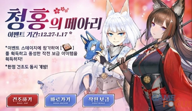이번 대규모 업데이트에선 3개의 이벤트가 동시에 추가되었다. 추가된 이벤트로는 매일 제비뽑기로 보상과 시그넷 '겨울의 데이트' 스킨을 획득할 수 있는 '정월의 축복' (2019년 1월 17일까지), 이벤트 스테이지에서 포인트를 모아 신규 캐릭터 '마키나미' 를 얻을 수 있는 '청홍의 축제' (2019년 1월 23일까지), 그리고 이번 업데이트의 주요 콘텐츠인 이벤트 스테이지를 플레이 할 수 있는 '청홍의 메아리'가 있다. (2019년 1월 17일까지) 획득한 이벤트 포인트로 신규 캐릭터 함선 '카가' 와 각종 아이템을 교환할 수 있는 이벤트 상점이 함께 오픈 된다.