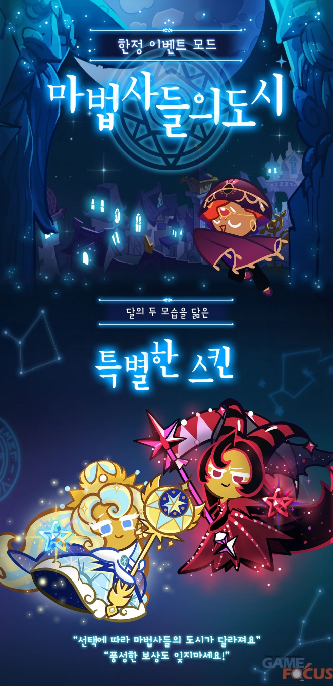 이번 업데이트를 통해 선보인 '마법사들의 도시'는 오는 2019년 1월 30일까지 한달 동안만 플레이할 수 있는 기간 한정 이벤트 모드로, '시나몬맛 쿠키'와 '마법사맛 쿠키', '달빛술사 쿠키' 등 마법이라는 키워드를 중심으로 확장된 쿠키들의 새롭고 신비로운 스토리를 담아냈다.