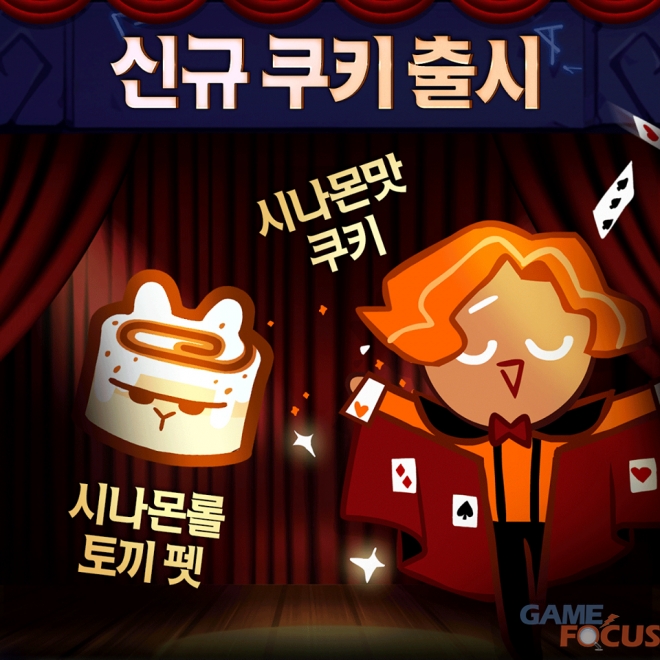 '시나몬맛 쿠키'의 멋진 조수 펫 '시나몬롤 토끼'도 등장했다. 3단 롤케이크를 던져 장애물을 파괴하고, 시나몬롤 젤리를 생성하며 쿠키를 도와주는 역할을 한다. 또한 신규 보물 '판타스틱 매직 트럼프 카드'도 새롭게 추가됐다. 플레이 도중 획득한 카드 뒷면 젤리 3장의 앞면이 모두 같은 그림일 경우, 보너스 점수를 얻을 수 있는 아이템이다.