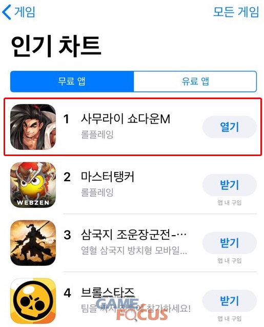 조이시티(각자대표 조성원, 박영호)가 서비스하는 모바일 액션 MMORPG '사무라이 쇼다운 M'이 출시와 함께 애플 앱스토어 인기 무료게임 1위를 달성했다.