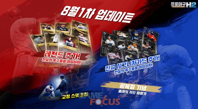 이용자는 이 밖에도 ▲구단별 1명씩 총 10명의 시그니처 타자 선수카드(LG 이대형, NC 모창민, 두산 심재학 등) ▲3종의 신규 특수능력 제작 리스트(큰건피하자, 위기관리전문, 소방수) ▲재평가된 클래식 선수카드(타자 63명, 투수 43명) 능력치 등을 프로야구 H2에서 즐길 수 있다.