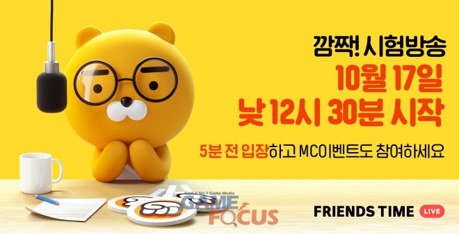 카카오게임즈(각자 대표 남궁훈, 조계현)가 17일(목), 실시간 인터랙티브 방송 '프렌즈타임'의 시험 방송을 전격 진행한다.