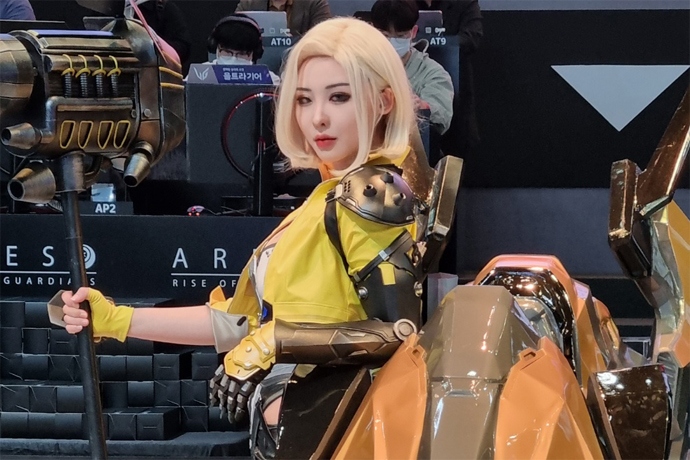 카카오게임즈가 '지스타 2022' 현장에서 자사가 전시 중인 '가디스오더', '아레스' 등의 신작 코스프레를 선보였다.