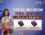 한빛소프트에서 자체 개발하고 서비스하는 모바일 MMORPG(대규모다중접속역할수행게임) '그라나도 에스파다M'이 게임 내 아이템 거래소를 오픈했다고 밝혔다. 그라나도 에스파다M에 따르면 거래소는 가문레벨 30 이상 달성하면 각 서버별로 이용할 수 있다. 메인 메뉴 또는 아이템 상세보기의 거래소 아이콘을 통해 던전을 제외한 모든 장소에서 거래소에 진입 가능하다. 유저들은 거래소 화면에서 아이템의 최저 판매 금액과 현재 등록돼 있는 수량, 일주일 평균 거래금액...