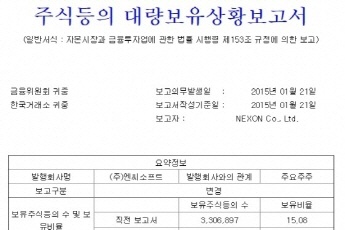 지난해 엔씨 지분을 추가 확보하며 경영권 확보에 나서는 것 아니냐는 의심을 샀던 넥슨이 실제 경영권 확보에 나선 것으로 드러났다.넥슨은 1월 27일 공시를 통해 엔씨...