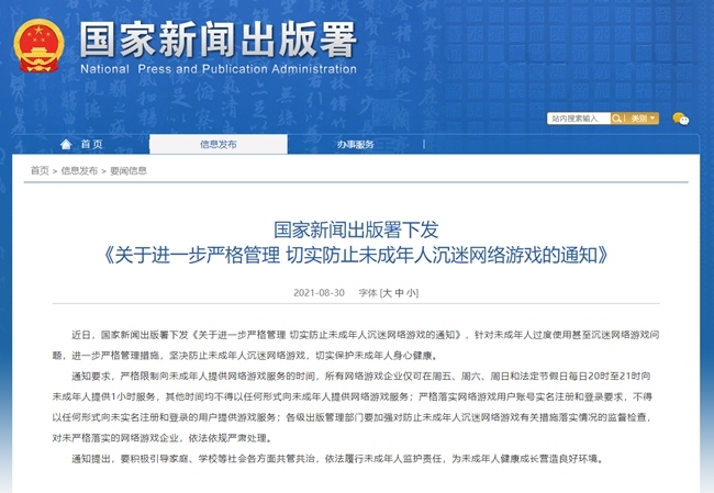 최근 중국 국가신문출판서에서 청소년들의 게임 이용을 주3시간으로 제한하는 강력한 게임 규제를 발표했다. 국가신문출판서는 8월 30일, '미성년자 게임 중독 방지를 위...