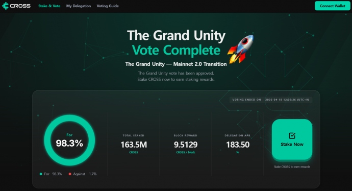 크로쓰, 메인넷 2.0 전환 투표 98% 찬성으로 마감...