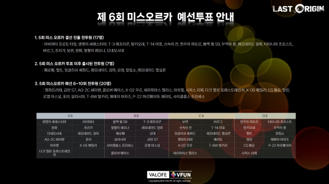 글로벌 퍼블리싱 전문 플랫폼 기업 밸로프는 모바일 게임 라스트오리진 ‘미스 오르카 선발 대회 조 추첨 라이브 방송’을 진행했다고 4일 밝혔다.이번 방송은 라스트오...