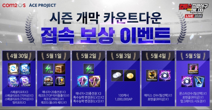 컴투스(대표 송병준)가 KBO 개막을 기념하여 자사에서 서비스 중인 야구 매니지먼트 게임 '컴투스프로야구 for 매니저 LIVE 2020'(이하 컴프매 LIVE 2020)의 대규모 이벤...