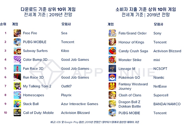 모바일 데이터 및 분석 플랫폼인 앱애니가 올 한 해 가장 인기를 얻은 모바일 게임 앱을 발표했다. 2019년 모바일 게임 시장은 전 세계적으로 하이퍼 캐주얼 장르 게임이...