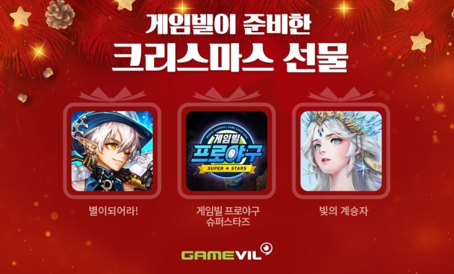크리스마스를 맞아 게임빌(대표 송병준)이 대표 게임 3종으로 크리스마스 기념 프로모션을 진행한다. 지난달 출시해 인기몰이 중인 '게임빌프로야구 슈퍼스타즈'를 비롯...