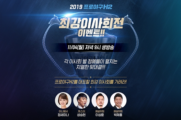 엔씨소프트(대표 김택진, 이하 엔씨)가 자사의 모바일 야구 매니지먼트 게임 '프로야구 H2'에서 '2019 프로야구 H2 최강이사회전(이하 최강이사회전)' 방송을 오는 11월 ...