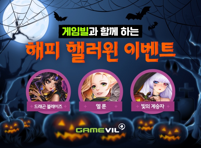 게임빌(대표 송병준)이 젊은이들의 축제로 자리잡은 '핼러윈'을 앞두고 글로벌 히트작인 '드래곤 블레이즈', '엘룬', '빛의 계승자' 3종으로 다양한 핼러윈 이벤트를 마...